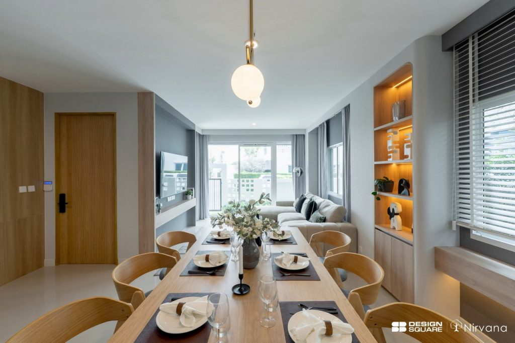 ในส่วนงานตกแต่งภายใน SB Design Square จะเข้ามามีบทบาทตั้งแต่การกำหนดทิศทางการออกแบบอินทีเรียร์ การคัดเลือกและจัดวางเฟอร์นิเจอร์ลอยตัว ไปจนถึงการจัดองค์ประกอบพื้นที่และการเลือก Prop เพื่อสร้างบรรยากาศของบ้านให้สมบูรณ์ตั้งแต่วันแรกที่เข้าอยู่อาศัย