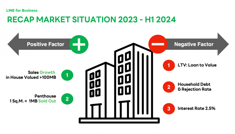 นอกจากใช้ LINE OA เป็นศูนย์กลางการติดต่อ พูดคุยสื่อสารแล้ว การลงโฆษณาบน LINE ไม่ว่าจะเป็นในรูปแบบ Reservation Ads และรูปแบบการประมูล (Bidding) ผ่าน LINE Ads ยังถือเป็นส่วนสำคัญเพื่อสร้างการรับรู้ กระตุ้นความสนใจไปยังผู้บริโภคกลุ่มเป้าหมาย ด้วยตำแหน่งโฆษณาที่หลากหลาย พร้อมความสามารถในการระบุกลุ่มเป้าหมายได้ ทั้งกลุ่มเป้าหมายหลักตามพื้นที่ ประชากรศาสตร์ ความสนใจ ฯลฯ และกลุ่มเป้าหมายที่แบรนด์สร้างขึ้นได้เอง โดยล่าสุด แบรนด์สามารถกำหนดกลุ่มเป้าหมายหลักบน LINE Ads ตามความสนใจในเซกเมนท์ลึกขึ้น เช่น ด้านอสังหาฯ และอื่นๆ อีกมากมาย จึงเป็นประโยชน์มากสำหรับธุรกิจนี้ ในการลงโฆษณา สื่อสารถึงจุดเด่นของโครงการที่หลากหลาย เพื่อดึงดูดความสนใจให้กับกลุ่มเป้าหมายที่ถูกกลุ่ม ส่งผลให้เม็ดเงินการลงโฆษณาบน LINE Ads ในครึงปีแรกจากกลุ่มธุรนี้เติบโตถึง 20%จากช่วงเวลาเดียวกันของปีก่อน