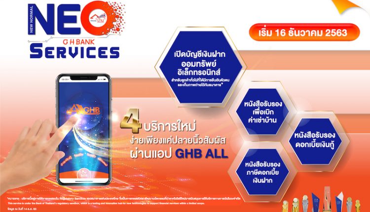 ธนาคารอาคารสงเคราะห์ (ธอส.) พัฒนาฟังก์ชั่นบริการบน Mobile Application:GHB ALL เพื่อให้ลูกค้าทำธุรกรรมกับธอส. ได้สะดวกสบาย ง่ายแค่ปลายนิ้วสัมผัส ผ่านช่องทางดิจิทัล ตามโครงการ “GHBankNewNormal Services” ด้วย 4 บริการใหม่ ประกอบด้วย 1.เปิดบัญชีเงินฝากออมทรัพย์เพียงเลือกเมนู เปิดบัญชีเงินฝาก จากนั้นยืนยันตัวตนรูปแบบดิจิทัลเปลี่ยนเงินงวดใหม่ ด้วยการใช้เทคโนโลยีการเปรียบเทียบใบหน้า (Facial Recognition) ที่มีการจัดเก็บภาพถ่ายไว้กับธนาคารแล้ว (อยู่ภายใต้การทดสอบในRegulatory Sandbox ของธนาคารแห่งประเทศไทย) จากนั้นจะสามารถเปิดบัญชีเงินฝากประเภทออมทรัพย์ได้โดยไม่ต้องเดินทางไปที่สาขา พิเศษสำหรับลูกค้าที่เปิดบัญชีเงินฝากออมทรัพย์ตามที่ธนาคารกำหนดผ่าน GHB ALL และซื้อสลากออมทรัพย์ ธอส. ชุดเกล็ดดาวผ่าน GHB ALL จำนวน 2 หน่วยขึ้นไปต่อครั้ง ภายในวันที่ 16 มีนาคม 2564 จะได้รับหูฟังบูทูธฟรี!!(1 ราย ต่อ 1 ชิ้น) 2.หนังสือรับรองดอกเบี้ยเงินกู้ สำหรับนำไปใช้เป็นหลักฐานประกอบการยื่นแบบแสดงภาษีเงินได้บุคคลธรรมดา และ 3.หนังสือรับรองภาษีดอกเบี้ยเงินฝาก เพื่อใช้เป็นหลักฐานการทำธุรกรรมต่าง ๆ หรือยื่นภาษีประจำปี ทั้ง 2 บริการเพียงเข้าไปที่เมนูบริการอื่นๆ แล้วเลือกหนังสือที่ต้องการ ยอมรับข้อกำหนดการใช้งาน และเลือกบัญชีที่ต้องการขอหนังสือแล้วให้ระบุ E-Mail เพื่อให้ระบบจัดส่งไฟล์หนังสือไปยัง E-Mail ที่แจ้งไว้ และ 4.หนังสือรับรองเพื่อเบิกค่าเช่าบ้าน เพียงกรอกรายละเอียดของบัญชีเงินกู้ที่ต้องการเบิกและ ระบุ E-Mail เพื่อให้ระบบจัดส่งหนังสือทาง E-Mail ต่อไป โดยลูกค้าสามารถใช้ทั้ง 4 บริการได้ตั้งแต่วันที่ 16 ธันวาคม 2563 เป็นต้นไป