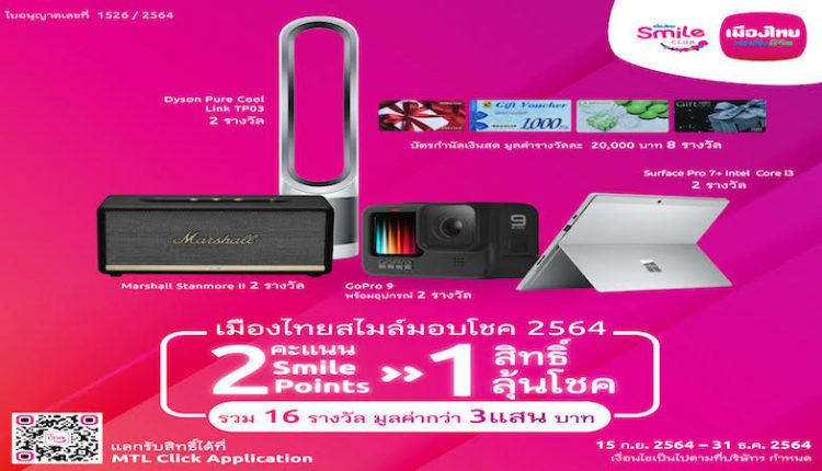 เมืองไทยประกันชีวิต จัดกิจกรรม “เมืองไทยสไมล์มอบโชค ครั้งที่ 2” ประจำปี 2564 ส่งมอบความสุขส่งท้ายปี แก่สมาชิกเมืองไทยสไมล์คลับ
