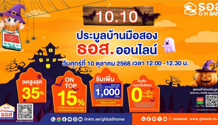 🏠 10.10 นี้ ธอส. จัดใหญ่! ประมูลบ้านมือสองออนไลน์ทั่วประเทศ คัดทรัพย์เด่น ทำเลดี ราคาคุ้มสุด ๆ ทั้งบ้านเดี่ยว ทาวน์เฮ้าส์ คอนโดฯ อาคารพาณิชย์ และที่ดินเปล่า รวมกว่า 1,000 รายการส่วนลดสูงสุด 35% ผ่านแอป GHB ALL HOME