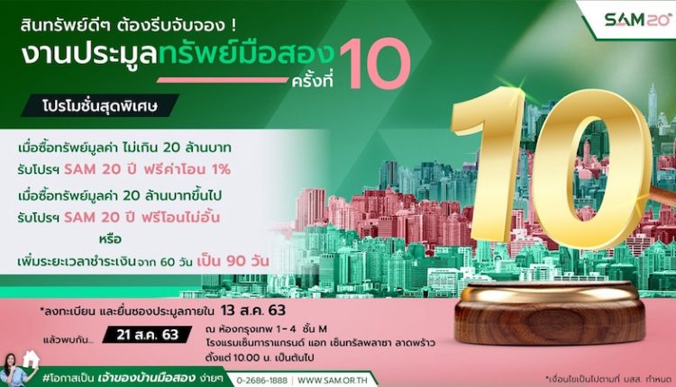SAM ช่วยลูกค้าช่วงโควิด เคาะราคาบ้านมือสองราคาสุดพิเศษ! จัดประมูลพร้อมโปรฉลอง 20 ปี ฟรีค่าโอน! ไฮไลท์ บ้านเดี่ยว เนื้อที่ 50.8 ตร.ว. โครงการ ไลฟ์ บางกอก บลูเลอวาร์ด-รามอินทราจาก 7.9 ล้านบาท เหลือ 6.69 ล้านบาท, ทาวน์เฮ้าส์ เนื้อที่ 25 ตร.ว.โครงการพรีเมี่ยมเพลส เอกมัย-รามอินทรา ถ.ประดิษฐ์มนูญธรรม จาก 8.09 ล้านบาท เหลือเพียง 6.89 ล้านบาท นัดเปิดซอง 21 ส.ค. ศกนี้
