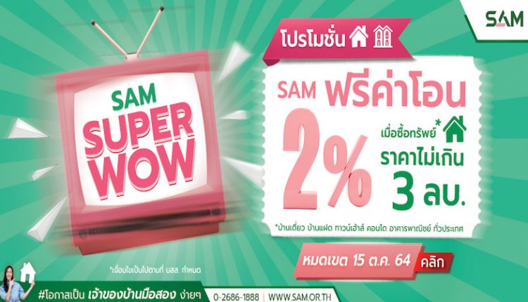 นายธรัฐพร เตชะกิจขจร ผู้จัดการ บริษัท บริหารสินทรัพย์สุขุมวิท จำกัด (บสส.) หรือ SAM เปิดเผยว่า SAM ออกโปรโมชั่นใหม่ ซุปเปอร์ว้าว! “SAM ฟรีค่าโอน 1-2%” สำหรับทรัพย์สินรอการขาย (NPA) ที่เสนอซื้อตรง โดย SAM ออกค่าธรรมเนียมการโอนกรรมสิทธิ์ 1% ให้แก่ลูกค้าที่ซื้อทรัพย์ทุกประเภท อาทิ ที่ดินเปล่า โกดัง โรงงานอุตสาหกรรม ห้องชุดพาณิชยกรรม ฯลฯ ที่มีราคาไม่เกิน 10 ล้านบาท ส่วนลูกค้าที่ซื้อทรัพย์ประเภทที่อยู่อาศัย ได้แก่ บ้านเดี่ยว บ้านแฝด ทาวน์เฮ้าส์ ห้องชุดพักอาศัย และอาคารพาณิชย์ที่มีราคาไม่เกิน 3 ล้านบาท SAM ออกค่าธรรมเนียมการโอนกรรมสิทธิ์ให้ 2% เริ่มแล้ววันนี้-15 ตุลาคม 2564