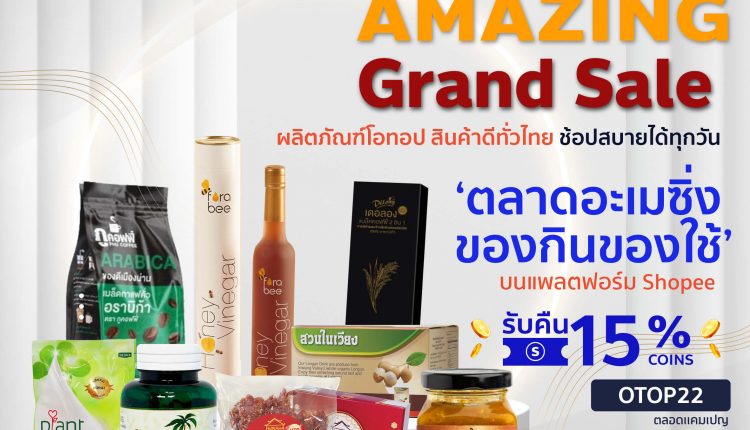 ทั้งนี้แคมเปญ “OTOP Amazing Grand Sale” จัดขึ้นระหว่างวันที่ 7 ตุลาคม– 5 พฤศจิกายน 2565 โดยผู้สนใจสามารถติดตามและสั่งซื้อได้ ด้วยการเข้าไปที่แอปพลิเคชันช้อปปี้ พิมพ์ค้นหาคำว่า OTOP
