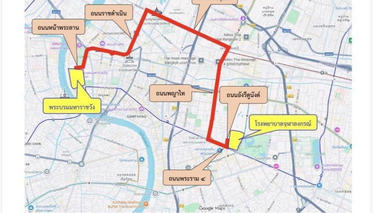 เส้นทางเคลื่อนย้ายพระบรมศพ เบื้องต้น 16.00 น. วันที่ 26 ต.ค.2569