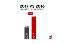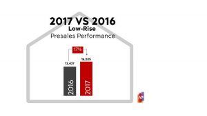 นายอนุพงษ์ อัศวโภคิน ประธานเจ้าหน้าที่บริหาร บริษัท เอพี (ไทยแลนด์) จำกัด (มหาชน) กล่าวว่า ในปีนี้ (ข้อมูล ณ วันที่ 15 ธันวาคม 2560) เอพี ไทยแลนด์ประสบความสำเร็จอย่างมากสามารถสร้างยอดขายรวมของสินค้าทั้งกลุ่มคอนโด และแนวราบได้มากถึง 41,600 ล้านบาท นับเป็นสถิติสูงสุดครั้งใหม่ เติบโตจากช่วงเดียวกันของปีที่ผ่านมากว่า 85% และเกินจากเป้าหมายยอดขายเดิมที่ตั้งไว้ 26,000 ล้านบาทถึง 60% โดยแบ่งเป็นยอดขายที่เกิดจาก สินค้าแนวราบมูลค่า 14,525 ล้านบาท และคอนโดมิเนียม27,075 ล้านบาท โดยปัจจัยที่ส่งผลให้ยอดขายของบริษัทเติบโตแบบก้าวกระโดดในปีนี้นั้น นอกจากจะมาจากสินค้าแนวราบทั้งบ้านเดี่ยวและทาวน์โฮมที่มีอัตรา