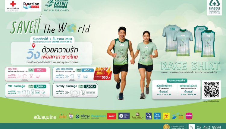 นักวิ่งสายรักษ์โลกพลาดไม่ได้กับงาน เดิน-วิ่งมหากุศล นครธนมินิมาราธอน จัดโดยโรงพยาบาลนครธน อย่างต่อเนื่องเป็นครั้งที่ 15 แล้ว ซึ่งปีนี้ มุ่งเน้นในเรื่องของการอนุรักษ์สิ่งแวดล้อม ภายใต้แนวคิด “Save the World” ไม่ว่าจะเป็น เสื้อวิ่ง เหรียญรางวัล โล่รางวัล และของที่ระลึก ล้วนผลิตด้วยวิธี Upcycle จากการเพิ่มมูลค่าให้ขยะพลาสติก พร้อมทั้ง Reduce ลดการใช้ทรัพยากร ลดการใช้น้ำ ลดพลังงาน ลดการปล่อยก๊าซ CO2 ลดขยะโดยการเปลี่ยนให้เป็นพลังงาน เพื่อช่วยลดผลกระทบต่อสิ่งแวดล้อม นอกจากนี้ ยังสามารถ Reuse นำเหรียญรางวัลไปใช้เป็นที่รองแก้วต่อได้อีกด้วย ทั้งนี้ เงินรายได้จากการจัดกิจกรรมหลังหักค่าใช้จ่าย มอบสมทบทุนโครงการเงินทุนฉุกเฉินเพื่อช่วยเหลือผู้ประสบภัยพิบัติ สภากาชาดไทย ซึ่งสาเหตุหนึ่งของภัยพิบัติเกิดจากปัญหาสิ่งแวดล้อม