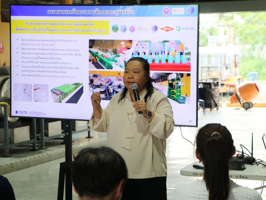 พร้อมกันนี้ยังได้มาเยี่ยมชมการมีส่วนร่วมของชุมชนในการช่วยขับเคลื่อน Circular Economy ผ่านกระบวนการ Upcycling พลาสติก และนำมาแปรรูปเป็นผลิตภัณฑ์เพิ่มมูลค่า สามารถสร้างงาน สร้างรายได้ให้กับคนในชุมชน ณ ชุมชนจัดการขยะวังหว้า จ.ระยอง