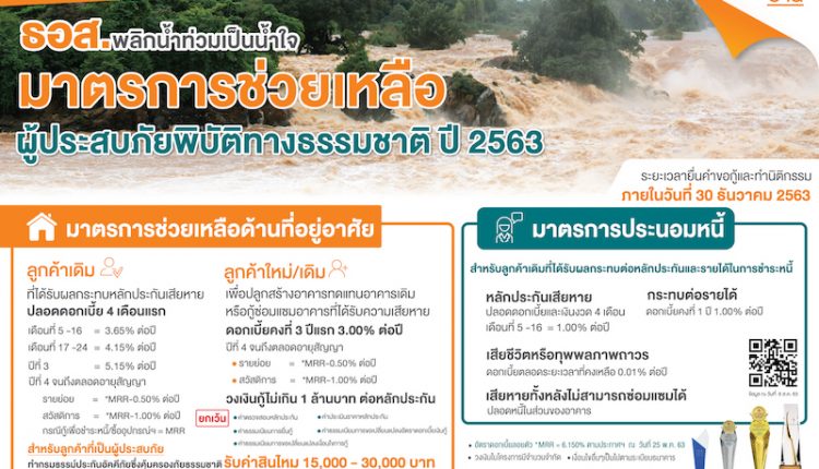 ธอส. จัด 7 มาตรการ ช่วยลูกค้าที่เดือดร้อนจากพายุโซนร้อนฮีโกส