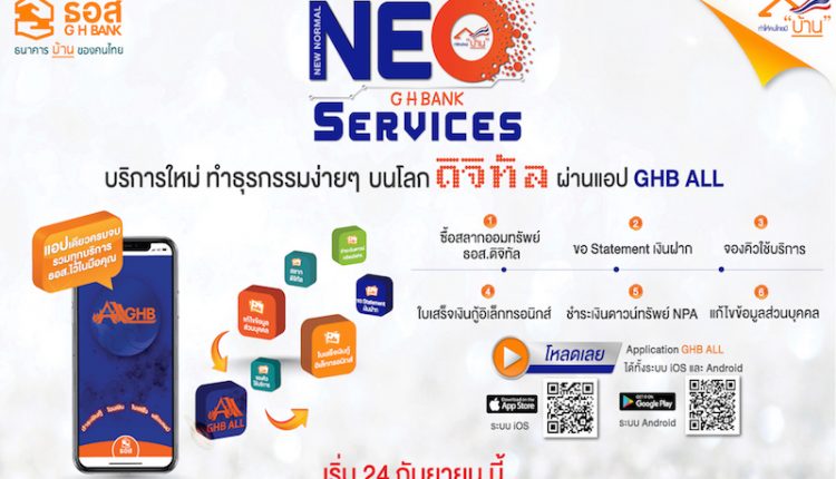 ธอส.ยกเครื่องปรับตัวยุค New Nomal เปิดบริการ “G H Bank New Normal Services” 6 บริการใหม่บน Application : GHB ALLทั้ง “ซื้อสลากออมทรัพย์ธอส.-ขอStatement-จองคิวใช้บริการล่วงหน้า-ใบเสร็จชำระเงินกู้รูปแบบอิเล็กทรอนิกส์-ชำระเงินดาวน์ทรัพย์NPA-แก้ไขข้อมูลส่วนบุคคล”สร้างความสะดวก ไร้กระดาษ