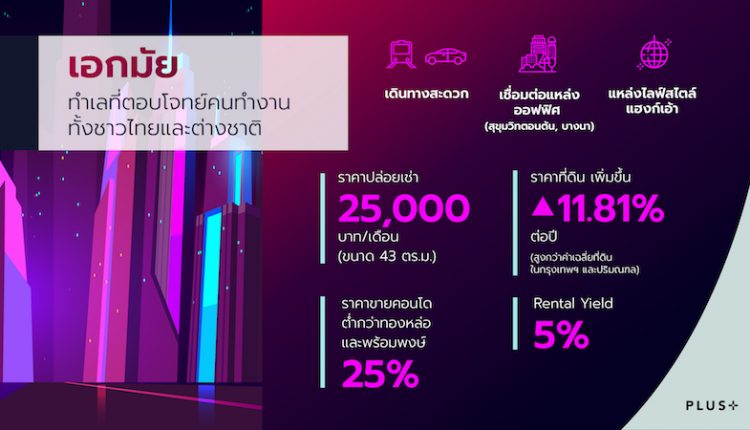 พลัสฯ เปืดข้อมูลทำเล “เอกมัย” ตลาดเช่าต่างชาติ-คนทำงาน/ราคาขายถูกทองหล่อ-พร้อมพงษ์ ถึง 25%