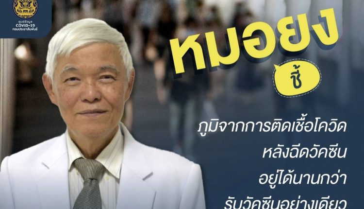 ศ.นพ.ยง ภู่วรวรรณ หัวหน้าศูนย์เชี่ยวชาญเฉพาะทางด้านไวรัสวิทยาคลินิก ภาควิชากุมารเวชศาสตร์ คณะแพทยศาสตร์ จุฬาลงกรณ์มหาวิทยาลัย โพสต์ข้อความเรื่อง “โควิด-19 ภูมิต้านทานที่เกิดขึ้นจากการติดเชื้อหลังได้รับวัคซีน จะอยู่ยาวนาน กว่าภูมิที่ได้รับวัคซีนอย่างเดียว เป็นเหตุให้โรคสงบลง”พร้อมระบุว่า