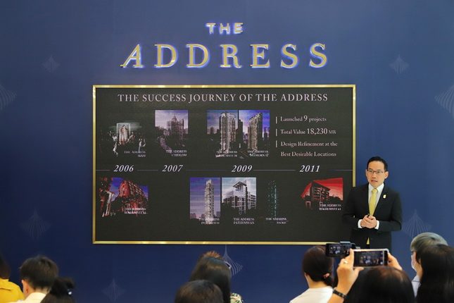 “นอกเหนือจากนั้น ยังเป็นการสานต่อความสำเร็จอันเป็นตำนานของกลุ่มสินค้าภายใต้แบรนด์ The Address ใน 9 โครงการที่ผ่านมาและยังเป็นที่กล่าวขานถึงปัจจุบัน ทั้งความเป็นที่สุดด้าน ‘คุณค่า’ ความละเมียดละไมในการออกแบบที่ผสานศิลปะชั้นสูงทั้งสไตล์ตะวันตกและตะวันออกเข้ามาเป็นส่วนหนึ่งของการใช้ชีวิตของคนเมืองระดับบนได้อย่างงดงามและเป็นเอกลักษณ์ บนที่สุดของ ‘ทำเล’ ที่เป็นสุดยอดทำเลที่น่าถวิลหาและความภาคภูมิใจในการครอบครอง และที่สุดของ ‘มูลค่า’ ที่เพิ่มขึ้นทั้ง 9 โครงการด้วยอัตราการเติบโตของราคาเฉลี่ยที่ 40% เปรียบเสมือนของสะสมที่จะสืบทอดจากรุ่นสู่รุ่นเป็นอย่างดี” นายวิทการ กล่าว