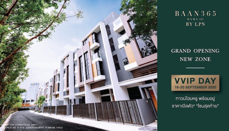 BAAN 365 RAMA III By LPN จัดงาน GRAND OPENING NEW ZONE วันที่ 19-20กันยายนนี้ เปิดจองทาวน์-โฮมหรูพร้อมอยู่ “โซนสุดท้าย” แห่งใหม่สำหรับครอบครัวขนาดใหญ่ที่กำลังมองหาพื้นที่แห่งใจไว้เติมเต็มสุนทรียะแห่งการอยู่อาศัย พบความเป็นส่วนตัวและตอบโจทย์ไลฟ์สไตล์เหนือระดับ เพียงจองภายในวันงานรับข้อเสนอสุดExclusive ในราคาเปิดตัว (เงื่อนไขเป็นไปตามที่บริษัทกำหนด)