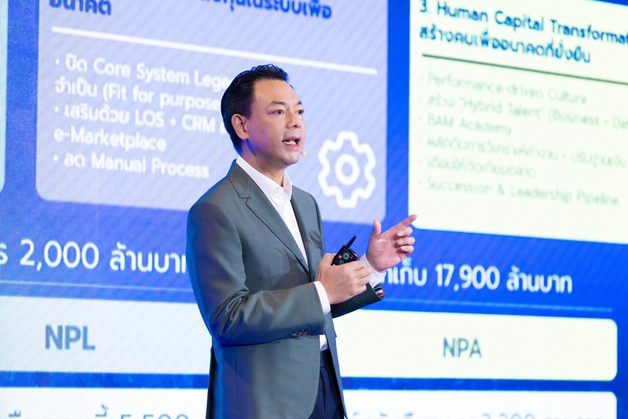 BAM จะปรับการกำหนดราคาทรัพย์ให้สอดคล้องตลาดและแข่งขันได้ เร่งลด Holding Period ของทรัพย์ NPA และบริหาร Cash Conversion Cycle ให้สั้นลง ควบคู่การลดการตั้งสำรองที่ไม่จำเป็น ด้าน NPL จะจัดกลุ่มลูกหนี้ S–M–L เพื่อกำหนดแนวทางอนุมัติและปรับโครงสร้างหนี้ให้เร็วขึ้น เพิ่มโอกาสปิดดีลและเปลี่ยนหนี้เป็นกระแสเงินสด