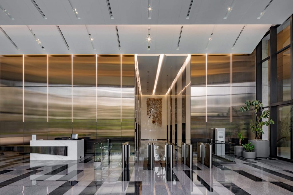 นอกจากนี้ มีการติดตั้งระบบไฟอัจฉริยะที่ปรับแสงให้พอดี ช่วยลดแสงจ้าและแสงสะท้อน ซึ่งจะช่วยให้บรรยากาศการทำงานสบายตามากขึ้น รวมถึงนวัตกรรมกระจก Laminated IGU ที่ช่วยลดความร้อนจากภายนอกได้ ทำให้อุณหภูมิในอาคารคงที่ตลอดทั้งวัน ช่วยลดการใช้พลังงานได้อย่างมีประสิทธิภาพ ขณะที่ด้านความปลอดภัย โครงการได้ติดตั้งระบบ Turnstile Access ควบคุมการเข้าออกแบบอัตโนมัติ ซึ่งช่วยให้ผู้ใช้อาคารใช้งานได้สะดวกและปลอดภัย