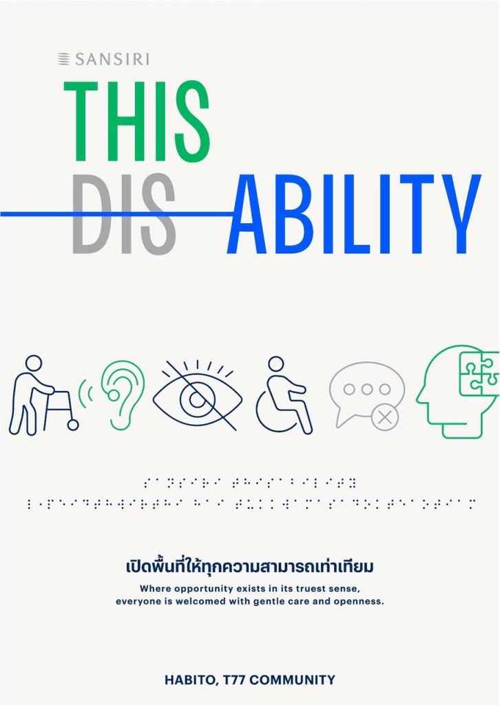 บริษัท แสนสิริ จำกัด (มหาชน) เปิดตัวแคมเปญ “Thisability เปิดพื้นที่ให้ทุกความสามารถเท่าเทียม” ภายใต้แนวคิด Sansiri Live Equally โดยมีเป้าหมายขยายแนวทางสนับสนุนความเท่าเทียมจากระดับองค์กร สู่พื้นที่เชิงพาณิชย์ในเครือข่ายชุมชนของบริษัท