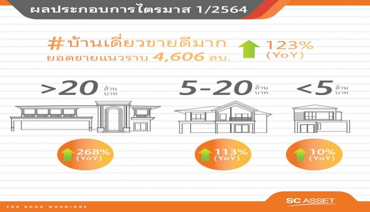 SC พร้อมรุกขึ้นแท่น “แบรนด์บ้านเดี่ยวอันดับ 1”เผยไตรมาสแรก บ้านทุกราคาขายดีมาก กวาด market share บ้านเดี่ยวอันดับ 1 ดันยอดขายรวม 5,700 ลบ. เติบโต 188% และเติบโตทั้งรายได้ และกำไรสุทธิ