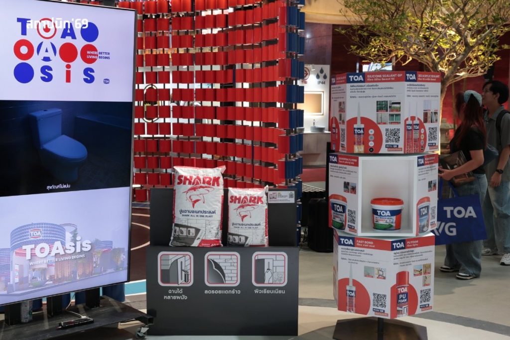 ภายในพื้นที่จัดแสดงขนาดประมาณ 391 ตารางเมตร แบ่งออกเป็นมากกว่า 10 โซน ครอบคลุมผลิตภัณฑ์หลัก เช่น สีทาอาคาร สีอุตสาหกรรม ปูนสำเร็จรูป ยิปซัม กระเบื้อง และอุปกรณ์ก่อสร้าง รวมถึงเทคโนโลยีบ้านอัจฉริยะภายใต้ความร่วมมือ TOA | JOMOO