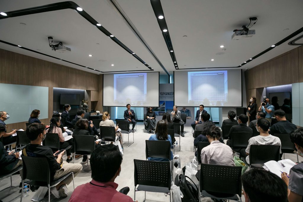 โดยได้รับเกียรติจาก คุณ โทโมฮิโกะ ยามานาชิ (Mr. Tomohiko Yamanashi) สถาปนิกชื่อดังจากประเทศญี่ปุ่น ผู้ได้รับรางวัลในแวดวงสถาปนิกมากมาย มาร่วมแลกเปลี่ยนความรู้ แง่มุม และแนวความคิดในการออกแบบโครงการต่างๆ ไม่ว่าจะเป็นอาคาร NBF OSAKI BUILDING (2011) ที่ได้รับรางวัล AIJ prizes (2014) สำหรับการนำเทคโนโลยี “BIOSKIN” ระบบช่วยระบายความร้อนของอาคารมาใช้ในการออกแบบ อากาศโดยรอบอาคารจะเย็นลงโดยใช้ความร้อนจากการระเหยกลายเป็นไอของน้ำฝน ที่หมุนเวียนสะสมอยู่ในท่อเซรามิก ช่วยลดภาระเครื่องปรับอากาศในการทำความเย็นภายในอาคารได้อย่างมีประสิทธิภาพ นับว่าเป็นการออกแบบเพื่อสิ่งแวดล้อม แต่ยังคงไว้ซึ่งความสวยงามที่มองเห็นได้จากภายนอกโดยคำนึงถึงผู้คนในสังคมเป็นสำคัญ