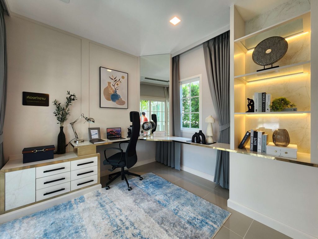 ประกอบด้วย 4 ห้องนอน 4 ห้องน้ำ พื้นที่พักผ่อน พื้นที่รับประทานอาหาร ห้องพระ ห้องทำงาน Glass House Laundry ห้องครัว และที่จอดรถสำหรับ 2 คัน