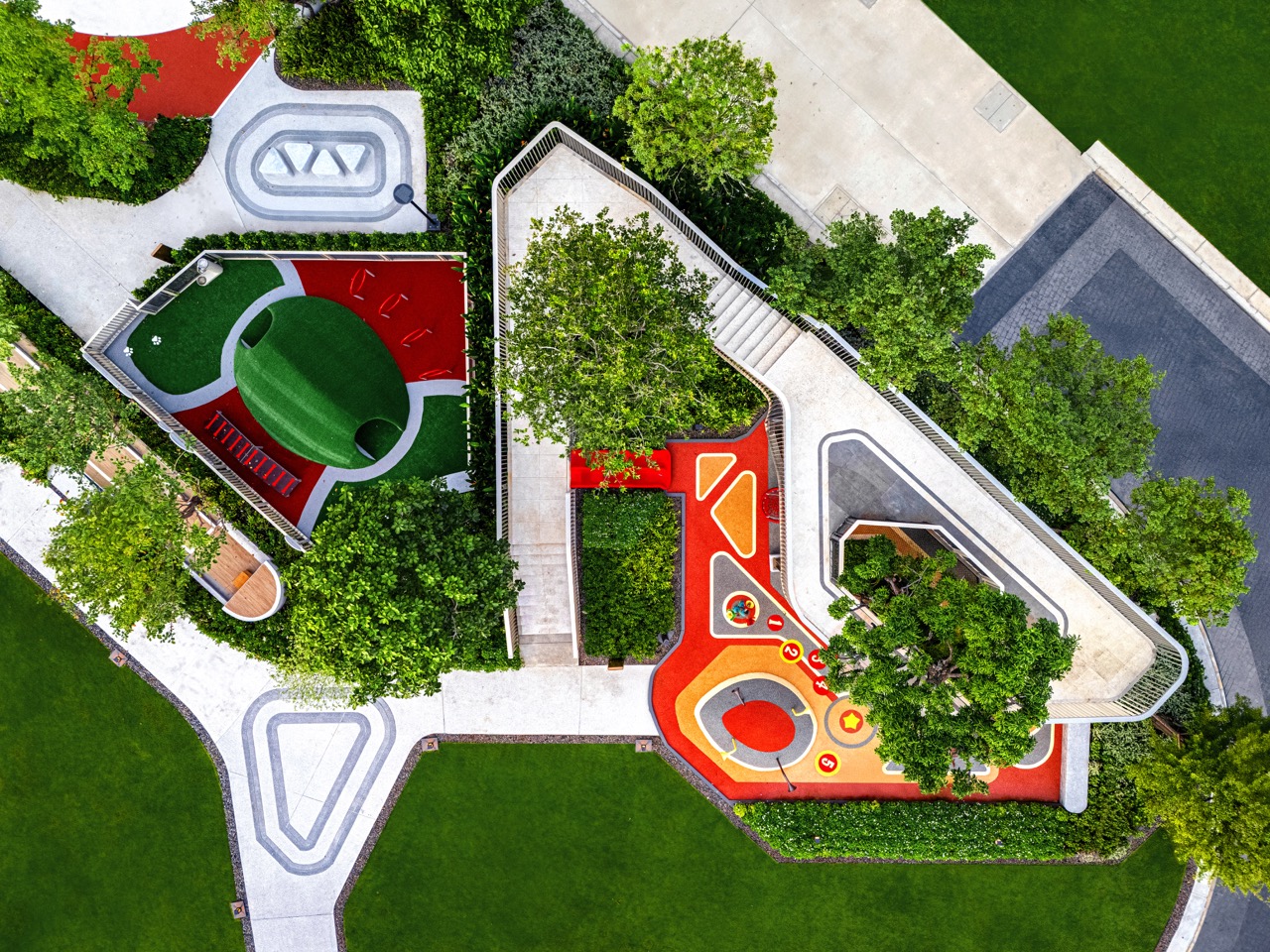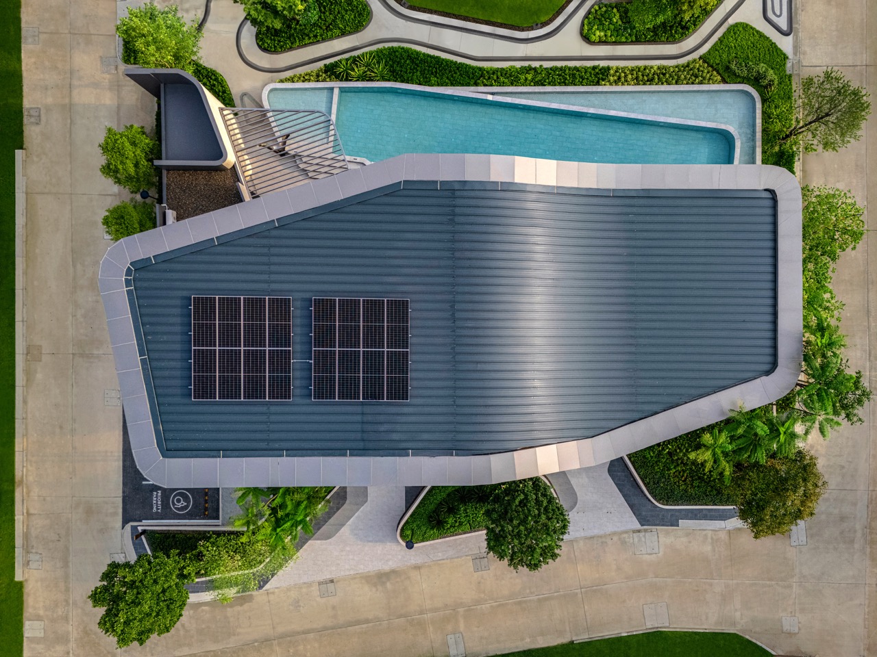 แนวคิด “Miniature Nature” จัดภูมิทัศน์เสมือนย่อส่วนธรรมชาติ สร้างพื้นที่สีเขียวทดแทนบริบทชุมชนหนาแน่น พร้อมสิ่งอำนวยความสะดวกครบวงจร ได้แก่ สระว่ายน้ำระบบเกลือ ฟิตเนส ห้องโยคะ/พิลาทิส สนามบาสเก็ตบอล Jogging Track และ PET Society