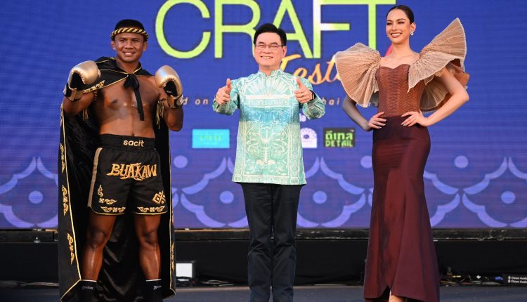 ผู้สื่อข่าวรายงานเพิ่มเติมว่า สำหรับไฮไลต์ที่เป็นทอล์ก ออฟ เดอะ ทาวน์ของงาน เมื่อ “บัวขาว บัญชาเมฆ” ถ่ายทอดพลัง “Soft Power” ผ่าน “กางเกงมวยผ้าไหมไทย” เป็นกางเกงมวยที่งดงามและวิจิตรมาก สร้างสรรค์ขึ้นจากผ้าไหมสีดำนิลผสมผสานการปักสะดึงกรึงไหมแบบโบราณฝีมือชั้นครู สง่างามและหาชมได้ยากยิ่ง ส่วนที่เรียกเสียแฟลช คือแฟชั่นโชว์ชุดฟินาเล่ของ “แอนนา เสืองามเอี่ยม” Miss Universe Thailand 2022 ที่ขึ้นสวมมงกุฎสะบัดผ้าไทยเรียกเสียงปรบมือกึกก้อง โดยในปี 2566 นี้คาดการณ์ว่าจะมีนักท่องเที่ยวเดินทางมายัง จ.ภูเก็ต มากถึง 12 ล้านคน เป็นนักท่องเที่ยวต่างชาติ 8 ล้านคน และนักท่องเที่ยวไทยอีก 4 ล้านคน โดยนักท่องเที่ยวทั้งชาวไทยและชาวต่างชาติที่เดินทางมาร่วมกิจกรรมและจับจ่ายใช้สอยผลิตภัณฑ์ศิลปหัตถกรรม เป็นของขวัญ ของฝากและของที่ระลึก ทั้งภายในงานเองและตลอดระยะเวลาที่พำนักในประเทศไทย โดยเฉลี่ยคนละ 600 บาท ทั้งนี้ คาดว่าในปี 2566 นี้จะสามารถผลักดันให้ผลิตภัณฑ์ศิลปหัตถกรรมไทยในตลาดสินค้าของขวัญของที่ระลึกในจังหวัดภูเก็ตเกิดเม็ดเงินสะพัดไม่ต่ำกว่า 7 พันล้านบาท