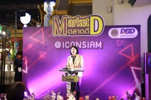 สำหรับงาน Market D @ ICONSIAM เป็นอีกหนึ่งกิจกรรมสำคัญที่กรมพัฒนาธุรกิจการค้าร่วมกับ ไอคอนสยาม เพื่อส่งเสริมการขายสินค้าของผู้ประกอบการสู่กลุ่มผู้บริโภคที่หลากหลาย เจาะกลุ่มตลาดนักท่องเที่ยวชาวต่างชาติ และสร้างโอกาสทางการค้าให้ผู้ประกอบการได้เข้าสู่ช่องทางการจำหน่ายของ ศูนย์การค้าสมัยใหม่ เป็นเครื่องมือสำคัญในการเพิ่มช่องทางการจำหน่าย สร้างการรับรู้ และกระตุ้นการบริโภคสินค้าไทย โดยผลสำเร็จของงานในวันนี้จะเร่งเครื่องการเติบโตของผู้ประกอบการ ส่งผลให้การขับเคลื่อน เศรษฐกิจการค้าไทยขยายตัวอย่างแข็งแกร่งและต่อเนื่องอย่างยั่งยืน” อธิบดี กล่าวทิ้งท้าย