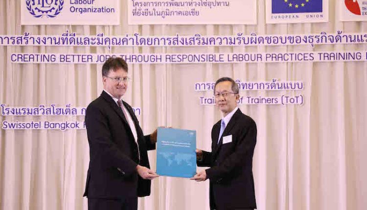 นายสุเทพ ตีระพิพัฒนกุล ประธานเจ้าหน้าที่ปฏิบัติการ กลุ่มผลิตปศุสัตว์ เครือเบทาโกรรับมอบปฏิญญาไตรภาคีว่าด้วยหลักการเกี่ยวกับบรรษัทข้ามชาติและนโยบายทางสังคม (MNE Declaration) จาก นายแกรม บักเลย์ ผู้อำนวยการสำนักงานแรงงานระหว่างประเทศประจำประเทศไทย กัมพูชา และ สปป. ลาว เพื่อแสดงความมุ่งมั่นในการสร้างงานที่ดีและมีคุณค่าส่งเสริมการจัดการด้านแรงงานอย่างรับผิดชอบในห่วงโซ่อุปทานไก่เนื้อไทยสู่มาตรฐานสากล ในพิธิเปิดการอบรมวิทยากรต้นแบบ (Training of Trainer) การดำเนินธุรกิจอย่างมีความรับผิดชอบ จัดโดยองค์การแรงงานระหว่างประเทศ (ILO) สภาองค์การนายจ้างแห่งประเทศไทย และสมาคมผู้ผลิตไก่เพื่อส่งออกไทย ซึ่งได้รับทุนสนับสนุนการดำเนินโครงการฯ จากสหภาพยุโรป ณ โรงแรมสวิสโฮเต็ล กรุงเทพฯ เมื่อเร็ว ๆ นี้