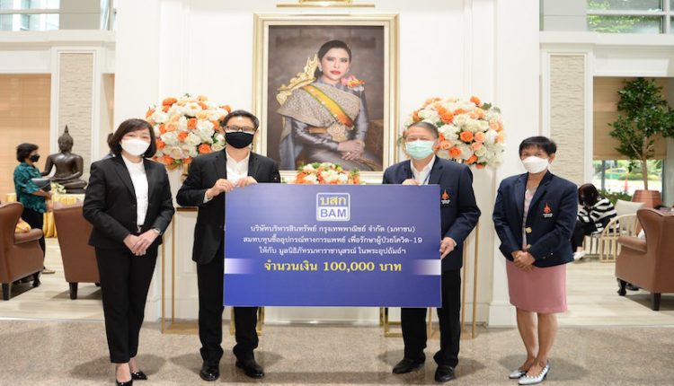 นายวีรเวช ศิริชาติไชย รองผู้จัดการใหญ่ และนางวิภาศิริ แสงวัชระกุล ผู้ช่วยผู้จัดการใหญ่ บริษัทบริหารสินทรัพย์ กรุงเทพพาณิชย์ จำกัด (มหาชน) หรือ BAM มอบเงินจำนวน 100,000 บาท เพื่อสมทบทุนซื้ออุปกรณ์ทางการแพทย์เพื่อรักษาผู้ป่วยโควิด -19 ให้กับมูลนิธิภัทรมหาราชานุสรณ์ ในพระอุปถัมภ์ฯ โดยมี รองศาสตราจารย์ นายแพทย์องค์การ เรืองรัตนอัมพร รองเลขาธิการราชวิทยาลัยจุฬาภรณ์ เป็นผู้รับมอบ ณ อาคารศูนย์การแพทย์มะเร็งวิทยาจุฬาภรณ์