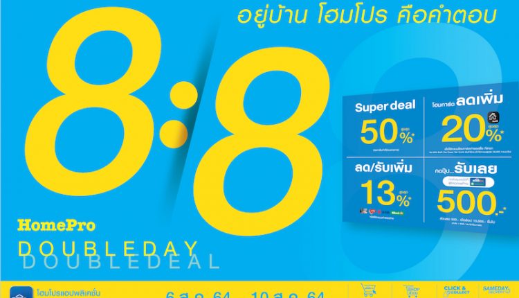 8:8 DOUBLEDAY DOUBLEDEAL เริ่มแล้ว ดีลดีเพื่อคนรักบ้าน อยู่บ้าน…โฮมโปรคือคำตอบ 6 ส.ค. 64 – 10 ส.ค. 64 นี้