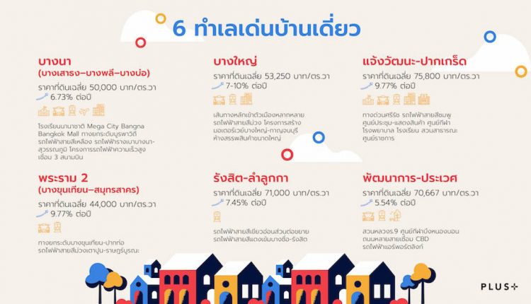 นางสาวสุวรรณี มหณรงค์ชัย รองกรรมการผู้จัดการสายงานพัฒนากลยุทธ์และบริหารสินทรัพย์ บริษัท พลัส พร็อพเพอร์ตี้ จำกัด เปิดเผยว่า จากการวิเคราะห์พฤติกรรมผู้บริโภคในการเลือกซื้อที่อยู่อาศัยหลังการระบาดโควิด-19 เราพบว่ากลุ่มลูกค้าที่เริ่มต้นในการสร้างครอบครัวให้ความสนใจในการเลือกซื้อบ้านแนวราบมากขึ้น ตลอดจนให้ความสำคัญเรื่องฟังก์ชั่นและการดีไซน์ที่ใส่ใจเรื่องสิ่งแวดล้อม ความปลอดภัย และสุขอนามัย ตอบโจทย์การอยู่อาศัยวิถีใหม่ (New Normal) โดยฝ่ายวิจัยและพัฒนาของพลัสฯ ได้ทำการสำรวจทำเลที่อยู่อาศัยในพื้นที่กรุงเทพมหานครและบริเวณโดยรอบ พบทำเลที่มีศักยภาพเหมาะสำหรับเป็นแหล่งอยู่อาศัยแห่งใหม่ เอื้อต่อการเดินทางเชื่อมต่อสู่ใจกลางเมือง มีสิ่งอำนวยความสะดวก ทั้งใกล้รถไฟฟ้า ทางด่วน และห้างสรรพสินค้าขนาดใหญ่ ซึ่งมี 6 ทำเลที่น่าสนใจ