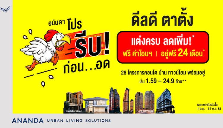 อนันดาฯ ส่งแคมเปญ “อนันดา โปรรีบ! ก่อน….อด” แต่งครบ ลดเพิ่ม* ฟรีค่าโอนฯ อยู่ฟรี 24 เดือน*
