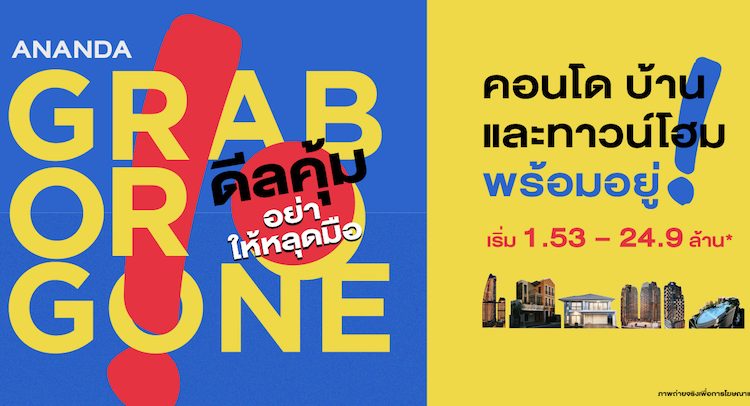 อนันดาฯ ส่งแคมเปญ GRAB OR GONE ดีลคุ้ม อย่าให้หลุดมือ ขน 34 โครงการ คอนโดฯ บ้านเดี่ยว และ ทาวน์เฮ้าส์พร้อมอยู่ เริ่ม 1.53 – 24.9 ล้าน