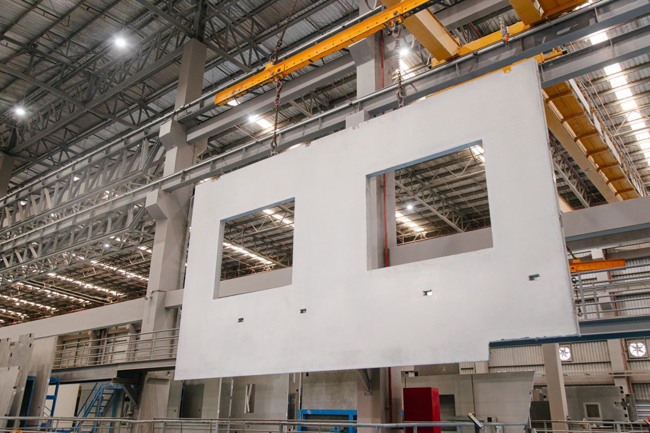 นายฐิติพงค์ มงคลปทุมรัตน์ ผู้ช่วยกรรมการผู้จัดการอาวุโส โรงงานผลิตแผ่นคอนกรีตสำเร็จรูป ระบุว่า ภาพรวมอุตสาหกรรมก่อสร้างไทยยังเผชิญความท้าทายด้านต้นทุนและแรงงาน ส่งผลให้ระบบพรีคาสท์กลายเป็นทางเลือกหลัก โดยบริษัทมีประสบการณ์กว่า 15 ปี และมีโรงงานผลิต 6 แห่งในจังหวัดปทุมธานี บนพื้นที่รวมกว่า 200 ไร่ มีกำลังการผลิตรวมประมาณ 5,000 ยูนิตต่อปี