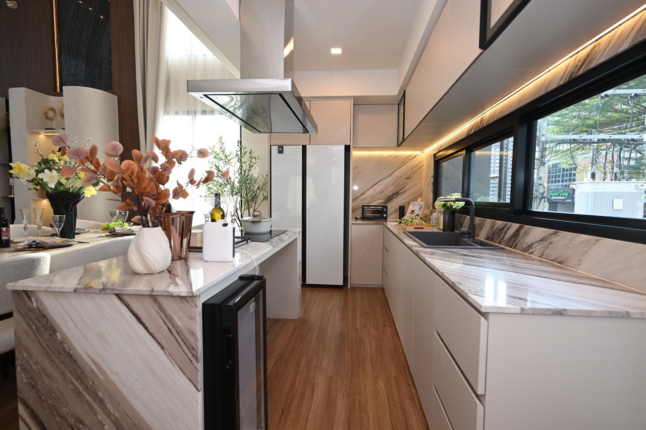 ขนาดที่ดินเริ่ม 24–53.2 ตารางวา พื้นที่ใช้สอย 275–542 ตร.ม. พร้อมที่จอดรถสูงสุด 5 คัน และ Home Lift ในยูนิตขนาดใหญ่