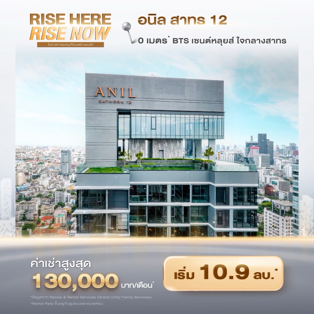 ท่ามกลางภาวะเศรษฐกิจที่ยังมีความไม่แน่นอน บริษัท แกรนด์ ยูนิตี้ ดิเวลล็อปเมนท์ จำกัด เปิดตัวแคมเปญ “RISE HERE, RISE NOW! โอกาสการลงทุนที่คุณสร้างเองได้” นำเสนอคอนโดมิเนียมพร้อมอยู่ 9 โครงการ บนทำเลใกล้รถไฟฟ้า เจาะกลุ่มผู้มองหาการลงทุนอสังหาริมทรัพย์ระยะยาว โดยระบุผลตอบแทนค่าเช่าสูงสุดราว 7%* และราคาเริ่มต้น 1.69 ล้านบาท*