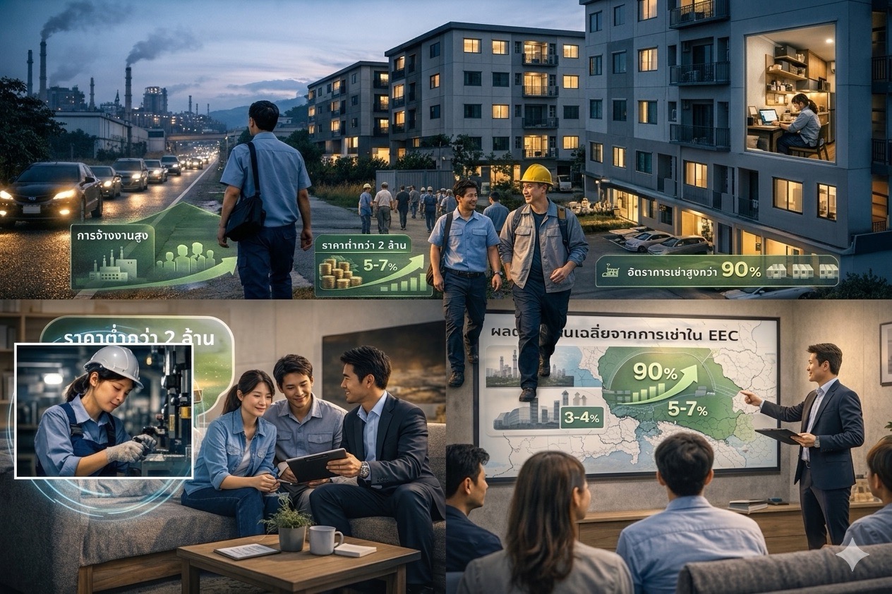 EEC พลิกโจทย์ตลาดอสังหาฯ ดีมานด์ขับเคลื่อนด้วย “งานจริง” ไม่ใช่กระแส คอนโดต่ำกว่า 2 ล้าน ยังนำตลาด ผลตอบแทนเช่า 5–7%