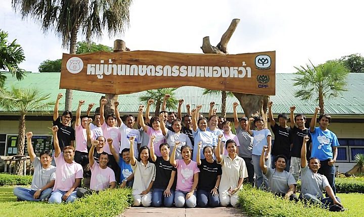 สำหรับ หมู่บ้านเกษตรกรรมหนองหว้า เริ่มดำเนินการเมื่อปี 2520 ถือเป็นต้นแบบเกษตรผสมผสานยั่งยืน ด้วยแนวคิด 4 ประสาน คือ ภาครัฐ เอกชน สถาบันการเงิน และเกษตรกร โดยการพลิกฟื้นผืนดินทรายที่เสื่อมสภาพ เพาะปลูกไม่ได้ผล จำนวน 1,253 ไร่ มาจัดรูปที่ดินใหม่ แบ่งเป็นแปลงละ 24 ไร่ พร้อมสร้างบ้านพัก 1 หลัง และโรงเรือนเลี้ยงสุกร 1 หลัง ให้แก่เกษตรกร 50 ครอบครัว ที่มีฐานะยากจน ไม่มีที่ดินทำกินเป็นของตนเอง โดยเลี้ยงสุกรเป็นอาชีพหลัก และมีอาชีพเสริมที่เหมาะกับสภาพแวดล้อมและวิถีชุมชน อาทิ ทำสวนมะม่วง ปลูกยางพารา เลี้ยงไก่ไข่ออร์แกนิค เพาะเห็ดฟาง ปลูกผักปลอดสารพิษ ด้วยระบบการบริหารจัดการที่อาศัยกระบวนการแลกเปลี่ยนเรียนรู้และการมีส่วนร่วม ช่วยให้ชุมชนเข้มแข็งและส่งเสริมคุณภาพชีวิตที่ดีขึ้นอย่างต่อเนื่อง