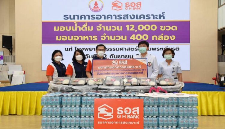 ธอส.ส่งมอบความช่วยเหลือสังคมไทยผ่าน 8 หน่วยงาน มูลค่ารวม 400,000 บาท เนื่องในโอกาสครบรอบ 68 ปี วันสถาปนาคารอาคารสงเคราะห์ 24 กันยายน 2564 สนับสนุนน้ำดื่มธนาคารและอาหารกลางวัน ให้แก่บุคลากรทางการแพทย์ และผู้ปฏิบัติหน้าที่ให้บริการประชาชนตามโรงพยาบาลในพื้นที่กรุงเทพฯและปริมณฑล รวมถึงให้กำลังใจบุคลากรทางการแพทย์ สู้ภัย COVID-19 พร้อมทั้งช่วยเหลือเด็กด้อยโอกาสทางสังคมในความดูแลของมูลนิธิ