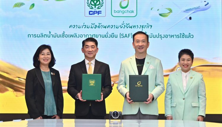 “ความร่วมมือระหว่างบางจากฯ และซีพีเอฟในครั้งนี้ ช่วยสร้างประโยชน์ในหลายมิติ นอกจากการเพิ่มมูลค่าให้กับของเสียจากกระบวนการผลิตอาหาร ซึ่งเป็นแนวทางเศรษฐกิจหมุนเวียนที่สมบูรณ์แบบ ยังส่งเสริมความยั่งยืนด้านสิ่งแวดล้อมและสุขภาพ ผ่านการนำน้ำมันปรุงอาหารใช้แล้วจากร้านอาหารในเครือซีพีเอฟ เช่น เชสเตอร์,ห้าดาว กระทะเหล็ก ข้าวมันไก่ ไห่หนาน ฯลฯ เข้าร่วมโครงการ “ไม่ทอดซ้ำ” และ “ทอดไม่ทิ้ง” ซึ่งเป็นโครงการที่บีเอสจีเอฟร่วมดำเนินการกับพันธมิตรหลักผู้ริเริ่มโครงการ คือ กรมอนามัย กระทรวงสาธารณสุข มาตั้งแต่ ปี 2565 โดยมีเป้าหมายในการร่วมกันขยายเครือข่ายผู้ประกอบการที่มีความตระหนักในการเป็นส่วนหนึ่งของสังคมในการดูแลสิ่งแวดล้อม สร้างคุณภาพชีวิตและสุขภาพที่ดีให้คนไทย ปัจจุบันมีหน่วยงานภาคราชการ เอกชน และผู้ประกอบการ ให้ความสนใจเข้าร่วมโครงการและส่งต่อน้ำมันปรุงอาหารเพื่อผลิต SAF มากกว่า 800 จุดทั่วประเทศ ซึ่งการแปรรูปน้ำมันปรุงอาหารใช้แล้วเป็น SAF จะช่วยสนับสนุนอุตสาหกรรมการบินให้เป็นมิตรต่อสิ่งแวดล้อมมากขึ้น ลดการปลดปล่อยก๊าซคาร์บอนไดออกไซด์ได้ถึง 80% เมื่อเทียบกับเชื้อเพลิงการบินแบบดั้งเดิม ช่วยตอบโจทย์การแก้ไขวิกฤตสภาวะภูมิอากาศ”