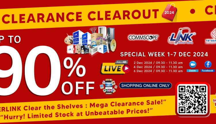 งานนี้ จัดขึ้นเพื่อเคลียร์สต็อกสินค้าจากแบรนด์ LINK AMERICAN, 19’GERMANY EXPORT RACK และ COMMSCOPE ทั้งสายสัญญาณ อุปกรณ์เครือข่าย และสินค้าตอบโจทย์เทคโนโลยีหลากหลายประเภทที่เหมาะสำหรับงานโครงการขนาดใหญ่ ธุรกิจขนาดกลาง ไปจนถึงการใช้งานในครัวเรือนที่เกี่ยวข้องกับระบบโครงข่ายพื้นฐาน ด้วยราคาที่คุณต้องตะลึง เริ่มต้นในราคา “หลักหน่วย” เพียง 1 บาท มาไว้ให้ช้อปกว่า 200 รายการ ซื้อง่ายผ่านออนไลน์ได้ของชัวร์ ตั้งแต่วันนี้ถึง วันที่ 7 ธันวาคมนี้ เท่านั้น หรือ จนกว่าสินค้าจะหมด คัดมาแล้วว่าเป็นของดี การันตีด้วยคุณภาพใช้งานได้อย่างมีเสถียรภาพสูงสุด