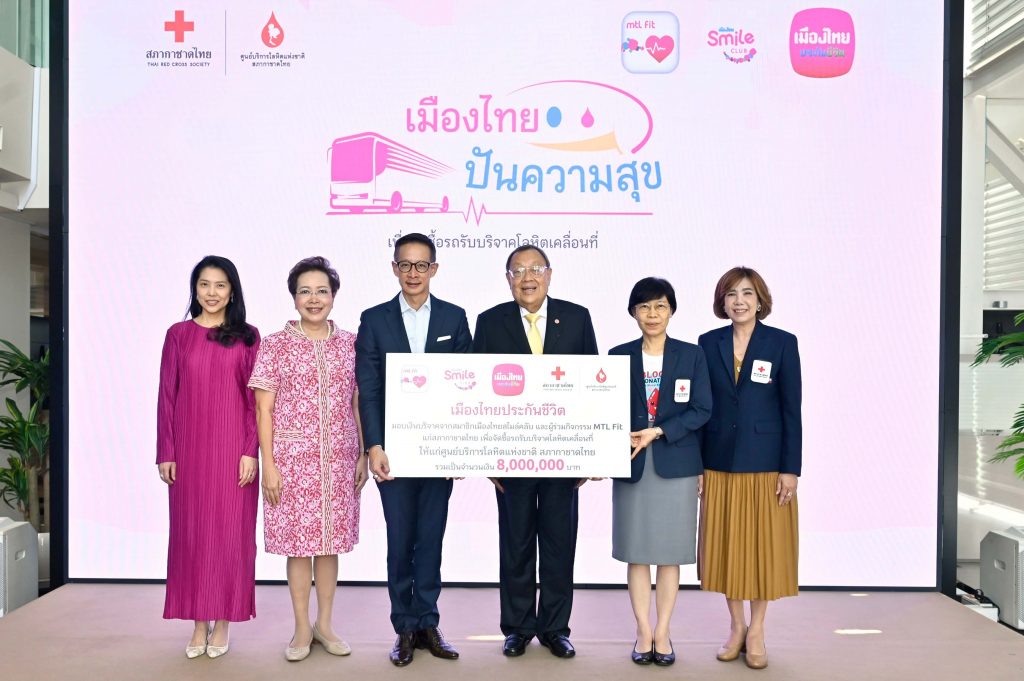 เมืองไทยประกันชีวิต มอบเงินสภากาชาดไทย ในโครงการ “เมืองไทยปันความสุข” เป็นจำนวนเงิน 8 ล้านบาท โดยจัดกิจกรรมผ่านแอปพลิเคชัน MTL Fit และ กิจกรรมร่วมกับลูกค้าสมาชิกเมืองไทยสไมล์คลับ ย้ำเป็นองค์กรที่เติบโตอย่างมั่นคงและยั่งยืนที่มีการตอบแทนสังคมอย่างต่อเนื่อง