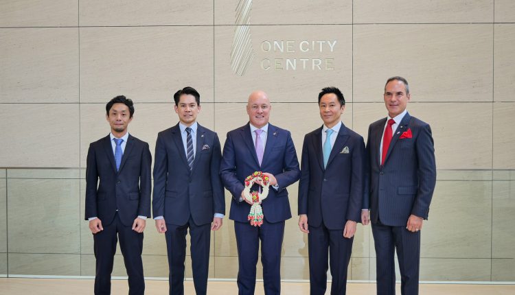 คณะผู้บริหาร RML นำโดย เบร็นตัน จัสติน มอเรลโล (ขวาสุด) ประธานเจ้าหน้าที่บริหาร, กฤษณ์ ณรงค์เดช (ที่ 2 จากขวา) และ กรณ์ ณรงค์เดช (ที่ 2 จากซ้าย) ตัวแทนคณะกรรมการบริษัท RML (บริษัท ไรมอน แลนด์ จำกัด มหาชน) ผู้นำในการพัฒนาอสังหาริมทรัพย์ระดับลักชัวรี่และอัลตร้าลักชัวรี่ของประเทศไทย พร้อมด้วย ยูจิ โอกาโมโต (ซ้ายสุด) กรรมการผู้จัดการ บริษัท มิตซูบิชิ เอสเตท (ประเทศไทย) จำกัด ผู้พัฒนาอสังหาริมทรัพย์ชั้นนำจากประเทศญี่ปุ่น ผู้ร่วมทุนโครงการ ‘โอซีซี’ (One City Centre) ให้การต้อนรับ คริสโตเฟอร์ ลักซอน (กลาง) นายกรัฐมนตรีนิวซีแลนด์ และคณะ ในโอกาสให้เกียรติเดินทางมาเยือนโครงการ ‘โอซีซี’ สุดยอดโครงการอาคารสำนักงานลักชัวรี่ Grade A+ ซึ่งเป็นศูนย์รวมร้านอาหาร คาเฟ่ และ บาร์ ชื่อดังของเอเชียตะวันออกเฉียงใต้ และเยี่ยมชมสำนักงานใหญ่ของ RML ที่ตั้งอยู่บนชั้น 54 ของอาคารแห่งนี้ ในระหว่างการเดินทางมาเยือนประเทศไทยเมื่อวันก่อน