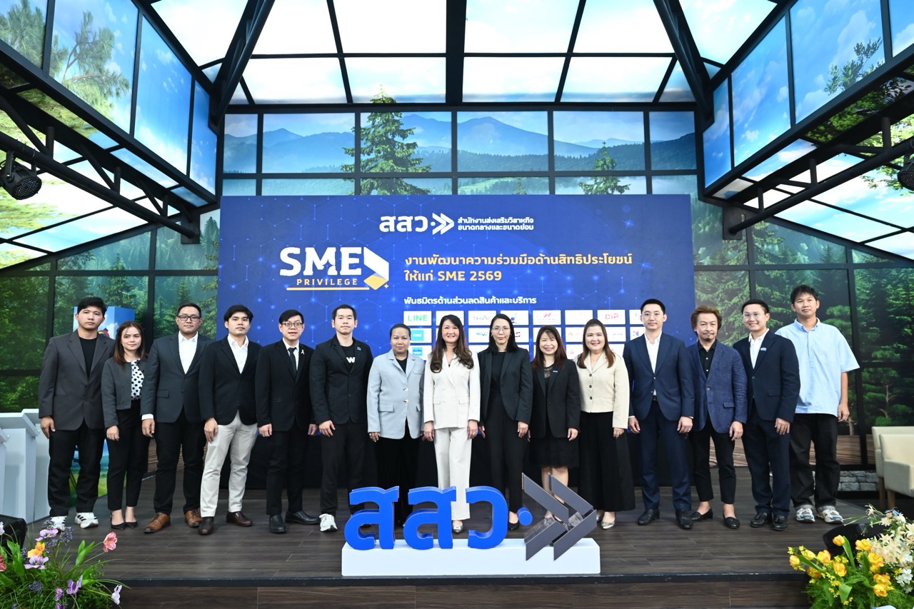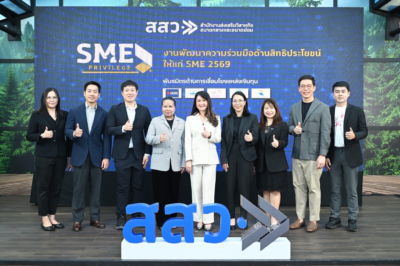 สำนักงานส่งเสริมวิสาหกิจขนาดกลางและขนาดย่อม (สสว.) เดินหน้าขับเคลื่อนผู้ประกอบการไทยผ่านโครงการ SME Privilege 2569 ภายใต้แนวคิด “เติมเต็ม แต้มต่อ เติบโต” ผนึกกำลังพันธมิตรกว่า 50 หน่วยงานทั้งภาครัฐและเอกชน ลงนามบันทึกข้อตกลงความร่วมมือ (MOU) เพื่อยกระดับระบบนิเวศ SME ไทยให้แข็งแกร่ง พร้อมมอบสิทธิประโยชน์ครอบคลุม 4 ด้านหลัก ทั้งส่วนลดสินค้าและบริการ ขยายช่องทางตลาด เชื่อมโยงแหล่งเงินทุน และสนับสนุนการปรับตัวสู่ธุรกิจสีเขียว (Green Business) เพื่อเพิ่มขีดความสามารถแข่งขันในระยะยาว
