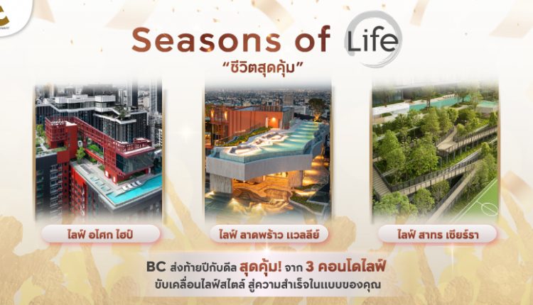 บริษัท กรุงเทพ ซิตี้สมาร์ท จำกัด (Bangkok Citismart หรือ BC) จัดแคมเปญโปรโมชั่น “SEASONS OF LIFE: ชีวิตสุดคุ้ม” ส่งท้ายปี 2565 รวม 3 โครงการภายใต้แบรนด์ LIFE (ไลฟ์) คอนโดมิเนียมสร้างเสร็จพร้อมเข้าอยู่สุดฮอตจาก บริษัท เอพี (ไทยแลนด์) จำกัด (มหาชน) กับ 3 ทำเลศักยภาพ ได้แก่ อโศก ลาดพร้าว และสาทร ทั้ง 3 โครงการนี้ตั้งอยู่ใกล้ทั้งรถไฟฟ้าทั้ง BTS และ MRT และอยู่ในทำเลที่เป็นทั้งย่านไลฟ์สไตล์คนรุ่นใหม่ ย่านเศรษฐกิจ และใกล้กับที่ตั้งสำนักงานออฟฟิศ เกรด A และบริษัทชั้นนำ