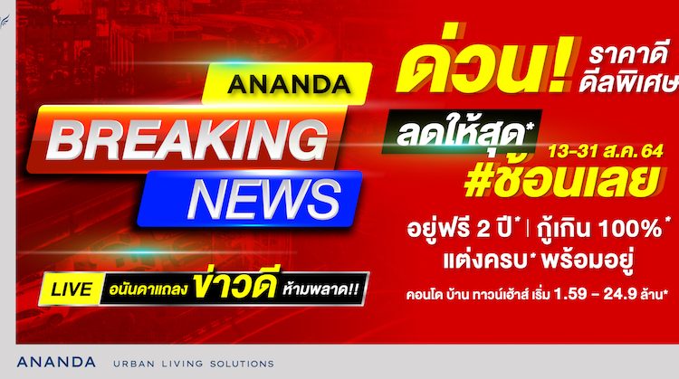 อนันดาฯ กระตุ้นตลาดครึ่งปีหลัง ส่งแคมเปญ Ananda Breaking Newsด่วน!! “อยู่ฟรี 2 ปี* กู้เกิน 100%* แต่งครบ* พร้อมอยู่”