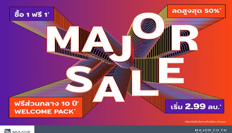 “เมเจอร์ ดีเวลลอปเม้นท์” ยกทัพโครงการเลี้ยงสัตว์ได้ 10โครงการ 10 ทำเล กลางเมือง 5 แบรนด์หรู เมทริส-มาเอสโตร-เอ็ม-รีเฟล็คชั่น-มอลตัน จัดแคมเปญ “MAJOR SALE” ลดจัดใหญ่ ให้ได้ให้ ซื้อ 1 ฟรี 1,ฟรีค่าส่วนกลาง 10 ปี, Welcome Pack, และส่วนลดสุดพิเศษ ราคาเริ่มต้น 2.99 ล้านบาท ถึง 31 ธ.ค.63