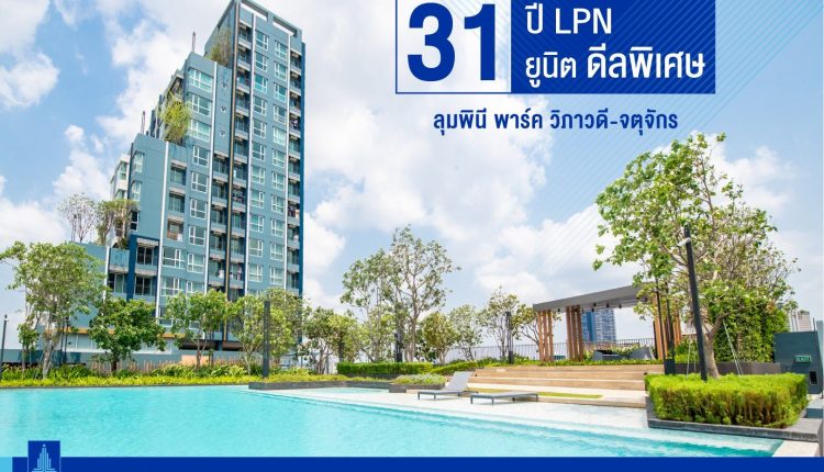 บริษัท แอล.พี.เอ็น.ดีเวลลอปเมนท์ จำกัด(มหาชน)(LPN) คัดสรรคอนโดทำเลทอง “ลุมพินี พาร์ค วิภาวดี-รังสิต 31 ยูนิตให้เป็นเจ้าของได้ง่ายในราคาพิเศษ ร่วมฉลอง 31 ปี ภายใต้ชื่อ “31 ปี LPN กับ 31 ยูนิต ดีลพิเศษ” ราคาขายเริ่มต้นเพียง 2.19–2.69 ล้านบาท