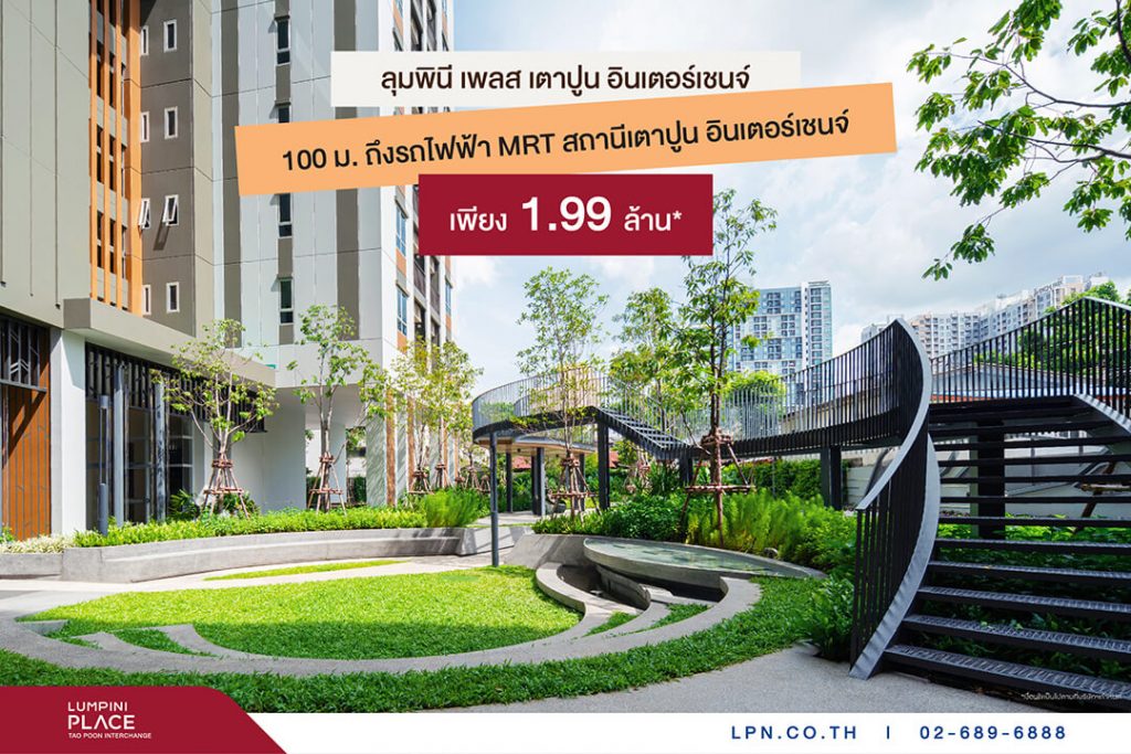 บริษัท แอล.พี.เอ็น.ดีเวลลอปเมนท์ จำกัด (มหาชน) จัดแคมเปญพิเศษส่งท้ายเดือนแห่งความรัก “ฟิน อิน เตาปูน” โครงการ ลุมพินี เพลส เตาปูน อินเตอร์เชนจ์ คอนโดมิเนียมใหม่พร้อมอยู่ เพียง 100 ม. จาก MRT สถานีเตาปูน อินเตอร์เชนจ์ ให้คุณและคนที่คุณรักได้ใช้ชีวิตแบบใกล้ชิดธรรมชาติกับสวนส่วนกลางขนาดใหญ่ ตอบโจทย์ทุกการอยู่อาศัย อาทิ Sky Garden, Elevated Pavilion, Sky Fitness, Relaxing Pool, Co-Working Space, Co-Living Area รายล้อมด้วยร้านอาหารและสิ่งอำนวยความสะดวกต่างๆ อย่างลงตัว เตรียมตัวให้พร้อม